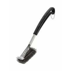 La brosse à barbecue à trois rangées de poils en acier inoxydable permet